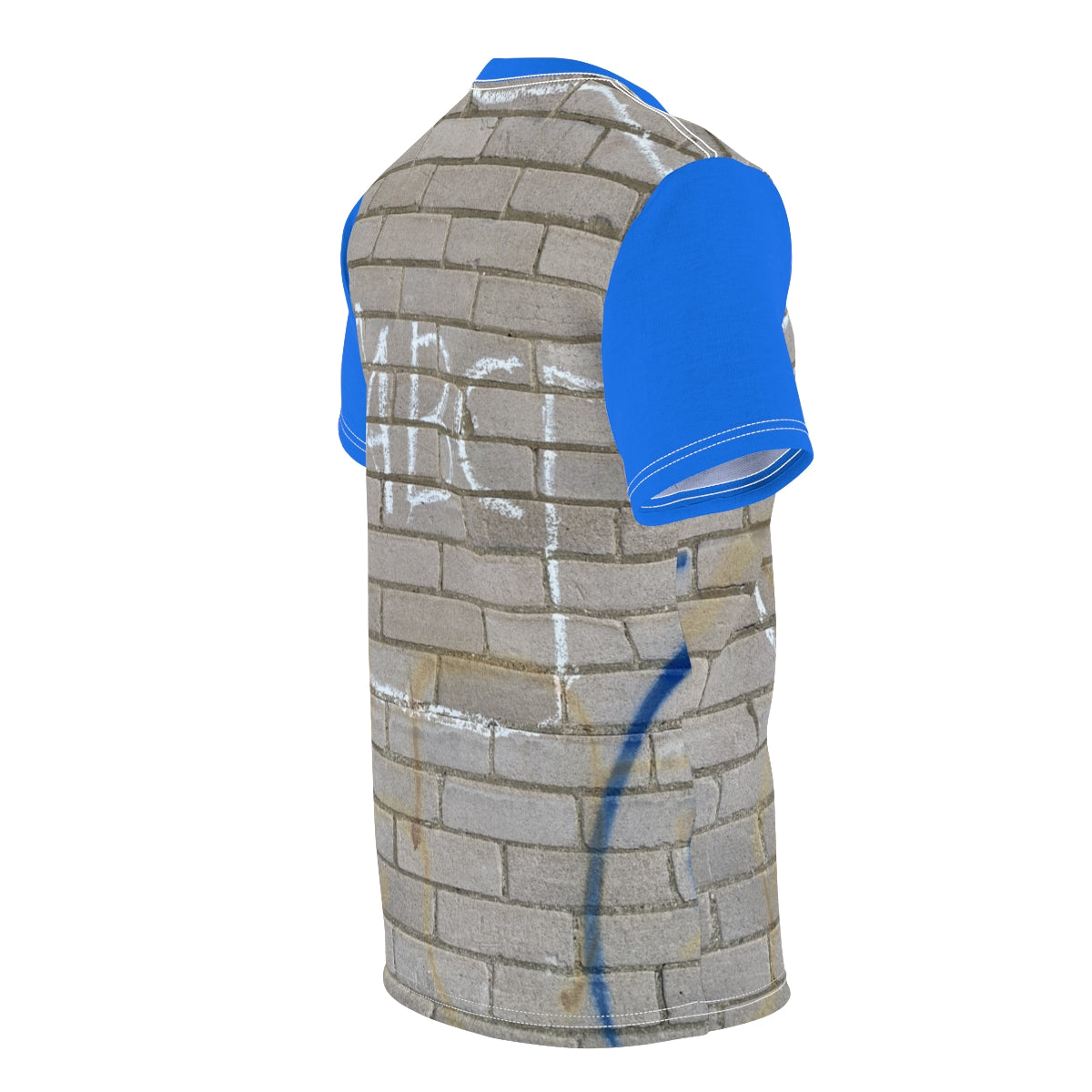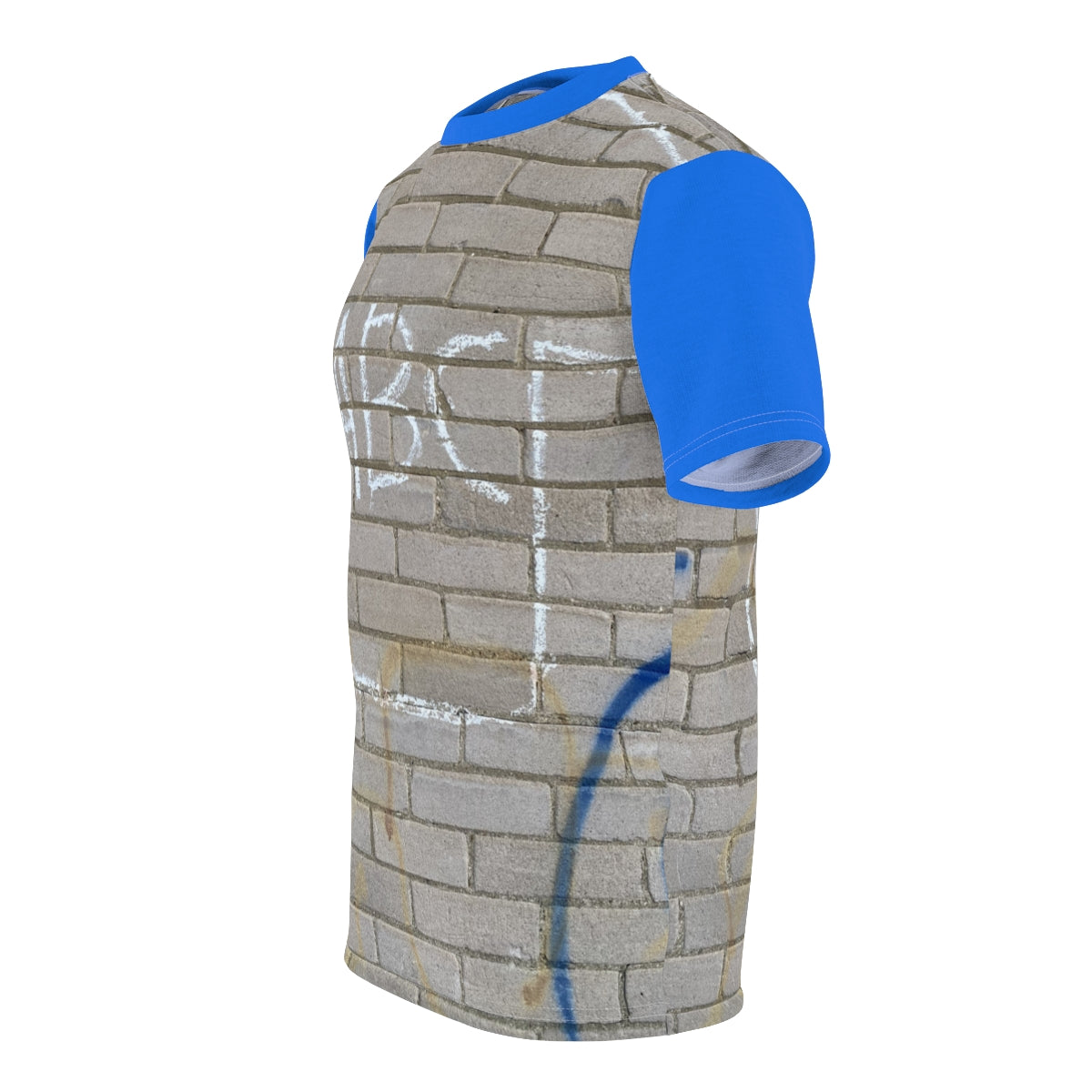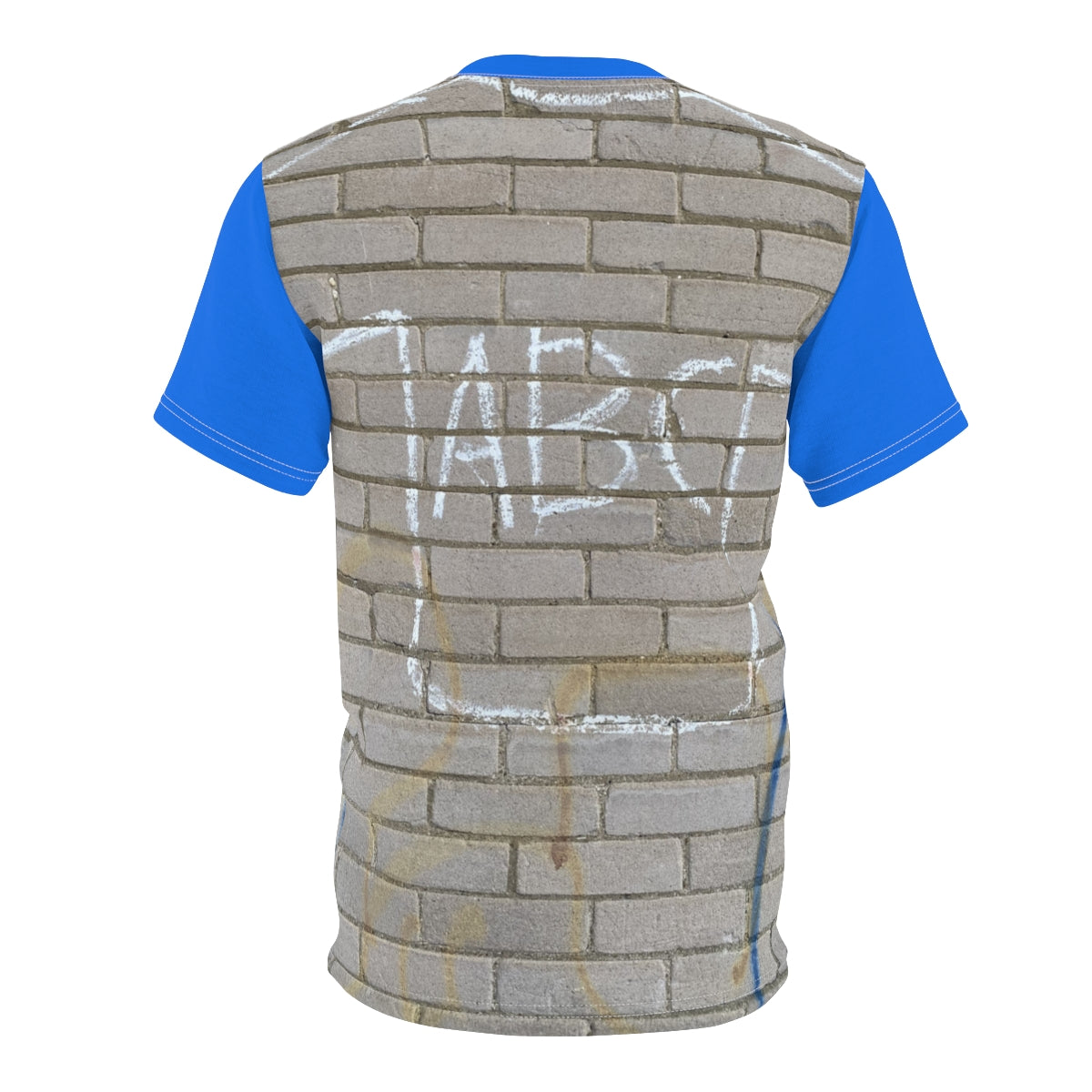 A t-shirt featuring a photograph I took of graffiti by a local artist on a brick wall in the Spring of 2022. The four variations of the t-shirt coincide with the colors of a search engine's letters this year.