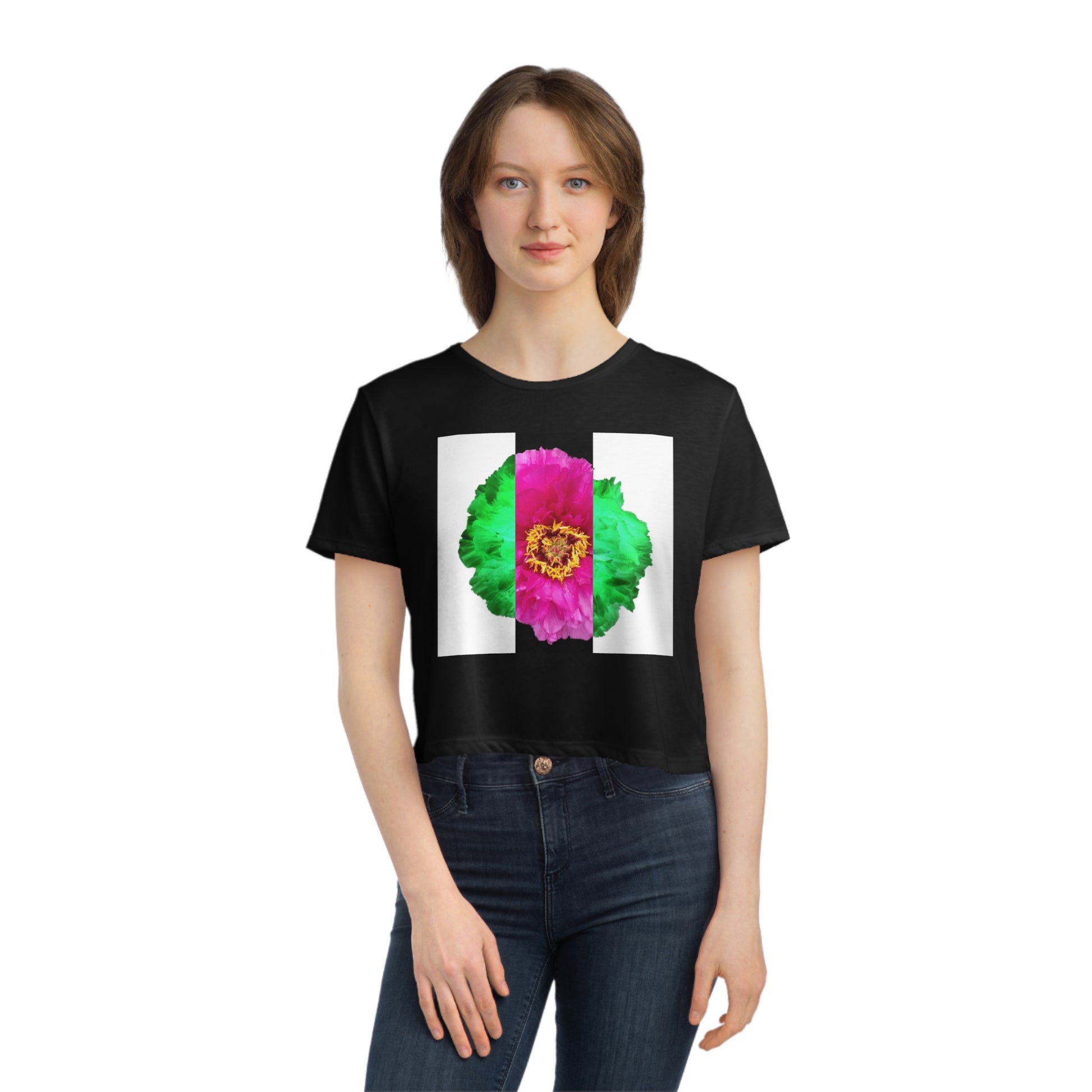 Flowy Cropped Tee 01: Pop Art Flower Striped Black Summer 2022 Attitude