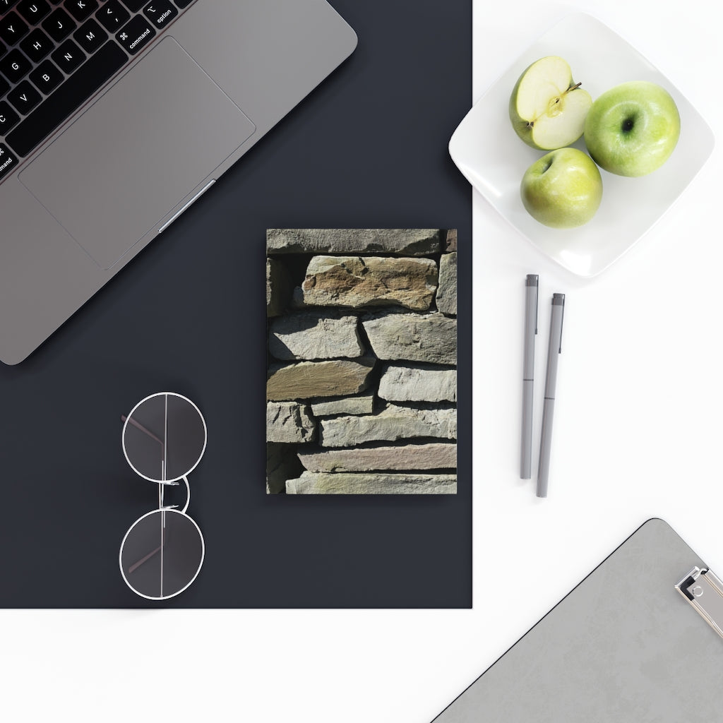 Hardbound journal featuring a photograph I took of a stone wall. Available with ruled, graph, or blank 90 gsm paper options for further customization.