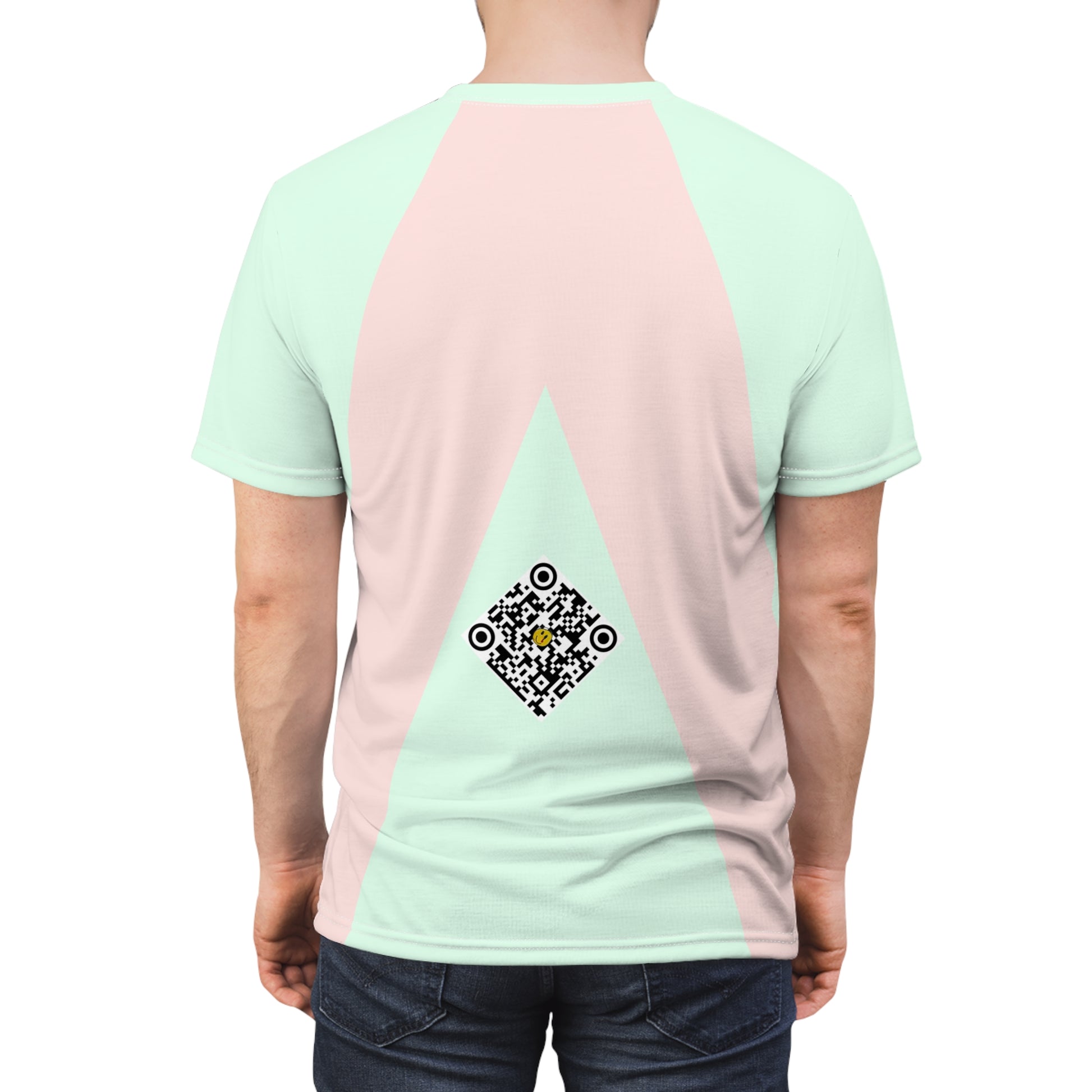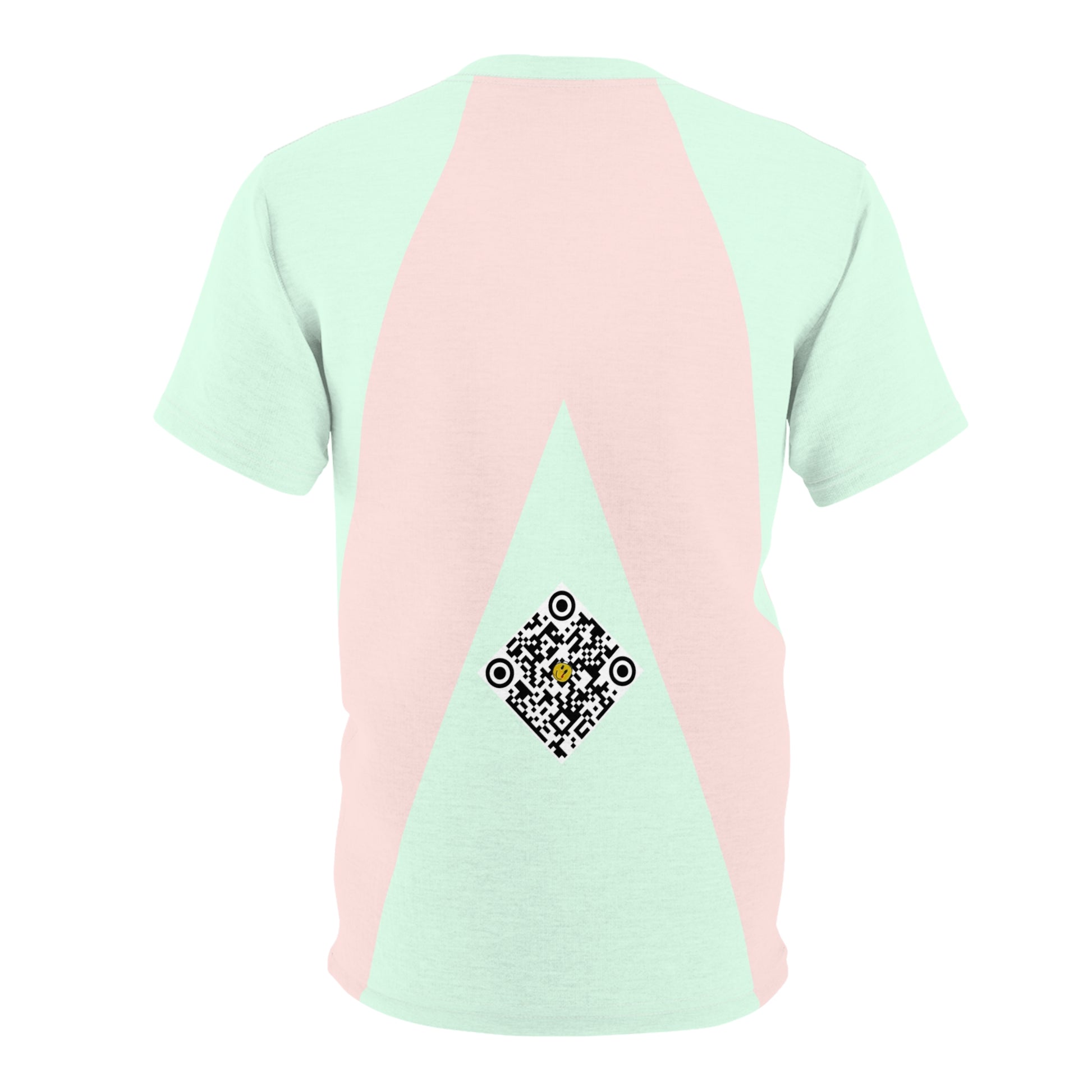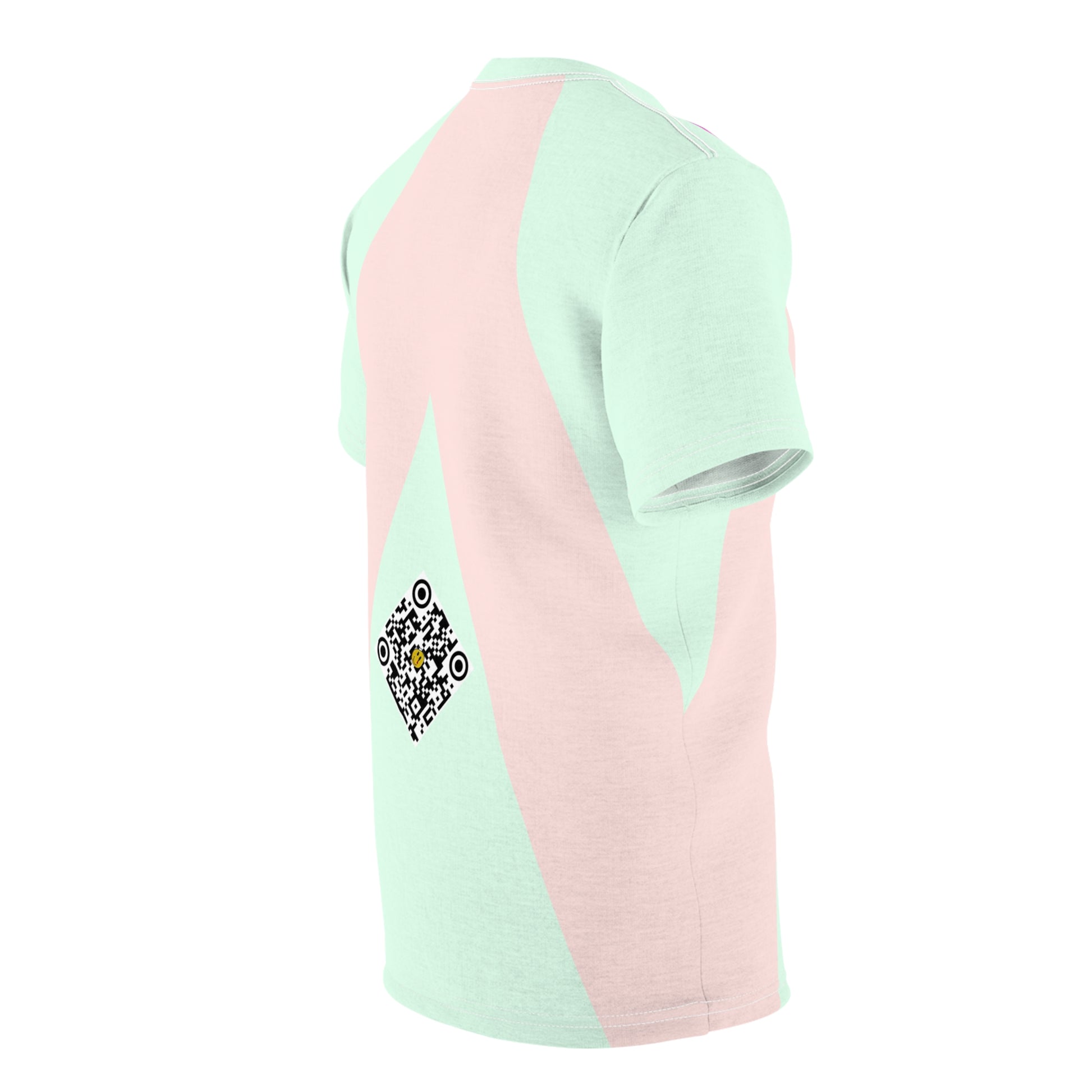 Pastel Summer 2022 Tee 01: Pale Green & Peach Geometry with Carnation Graphic Epaulettes
