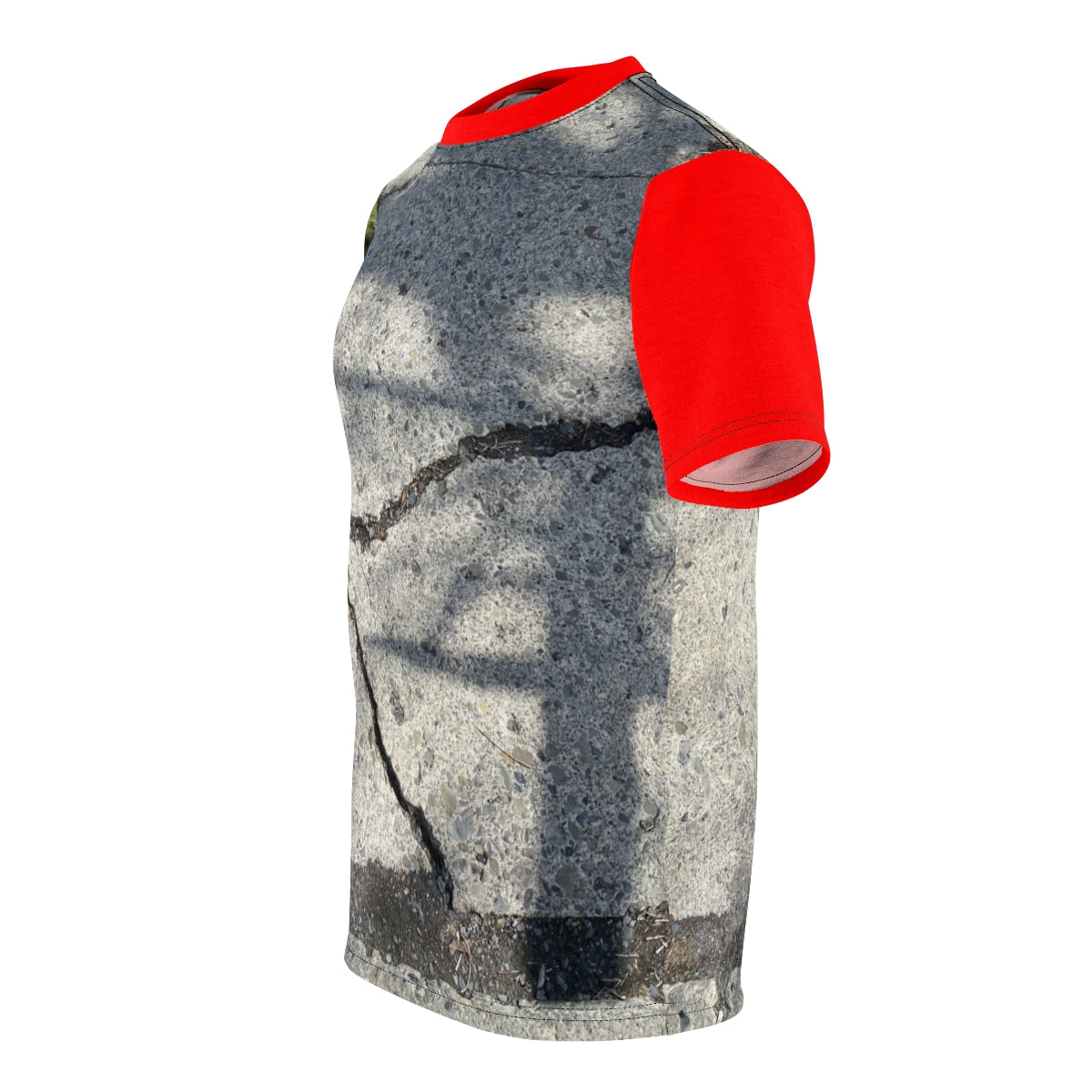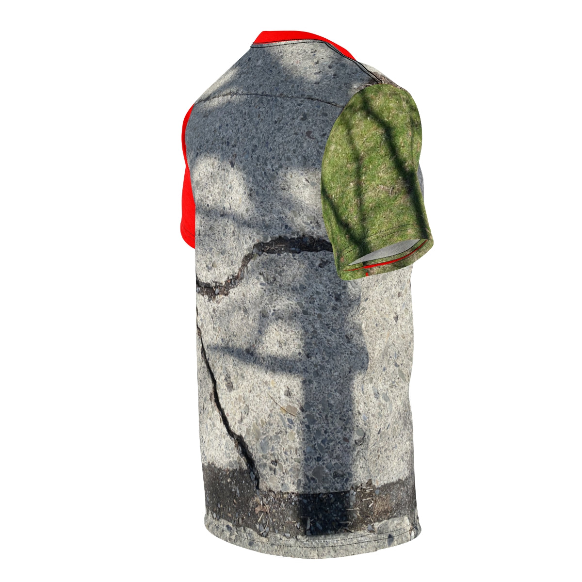 Part of my Spring 2022 Sidewalk Style Tee Collection, this shirt features a cool photograph of a cracked sidewalk framed by grass and bright red.
