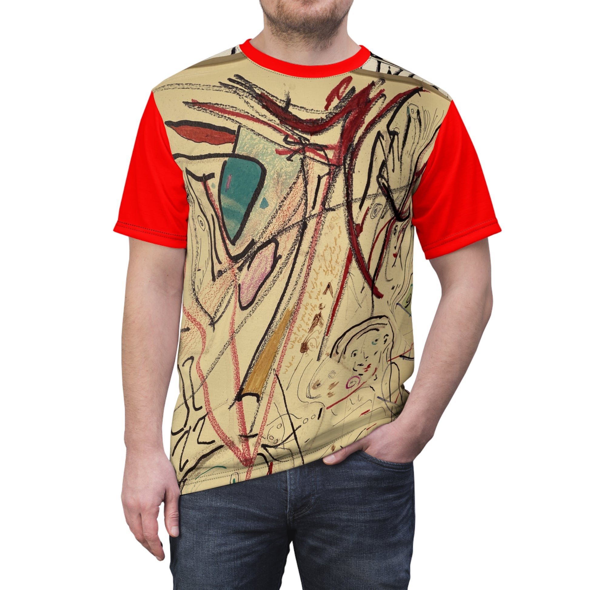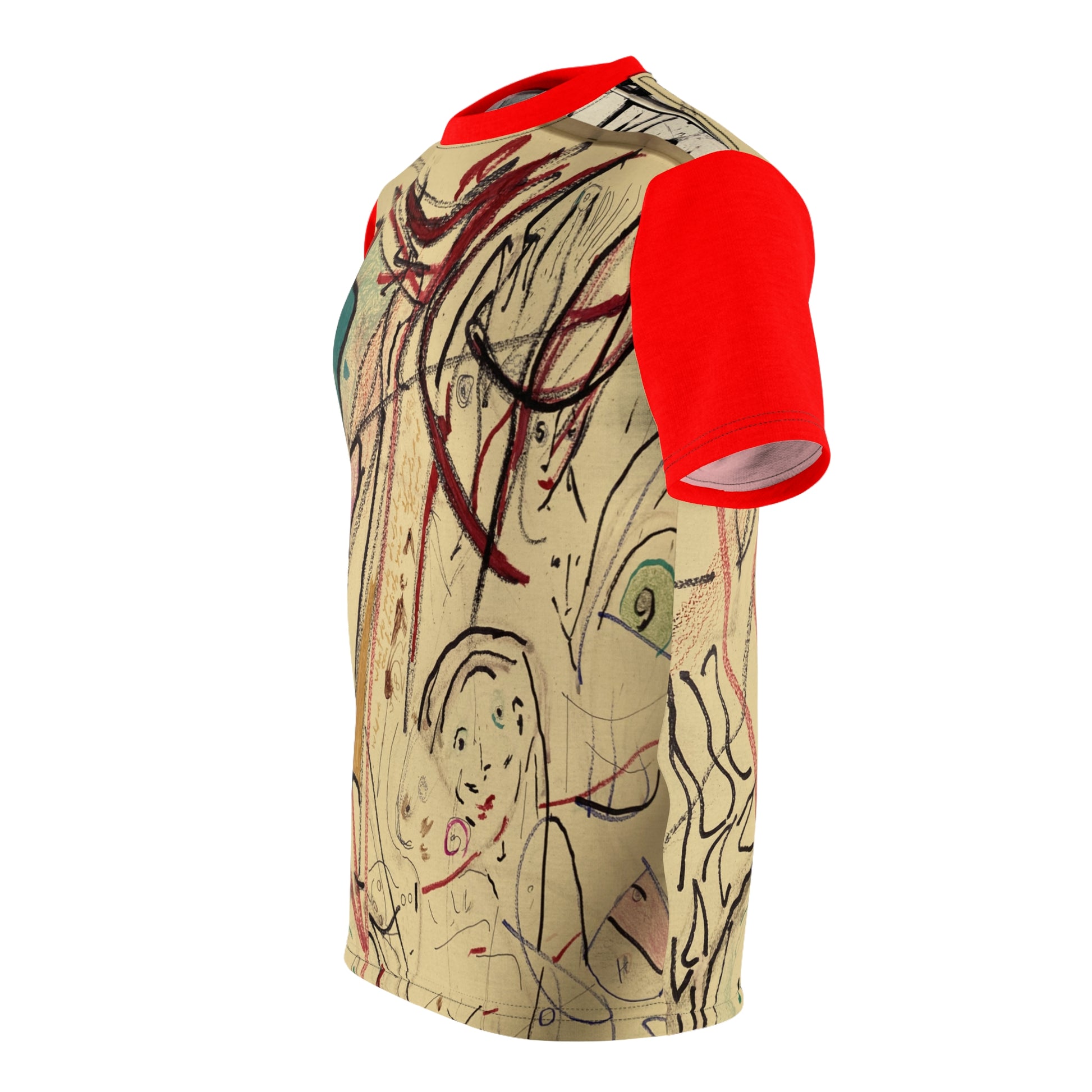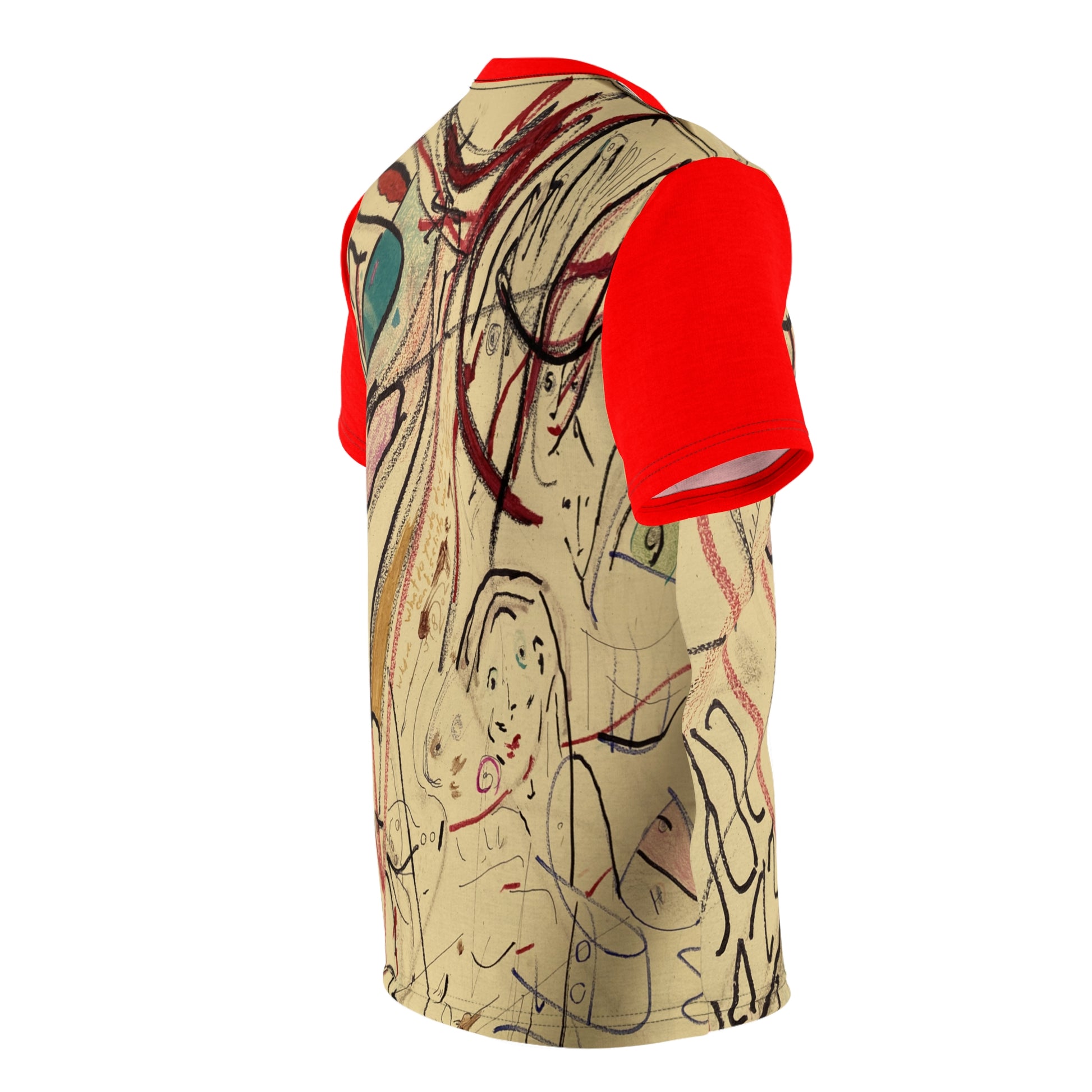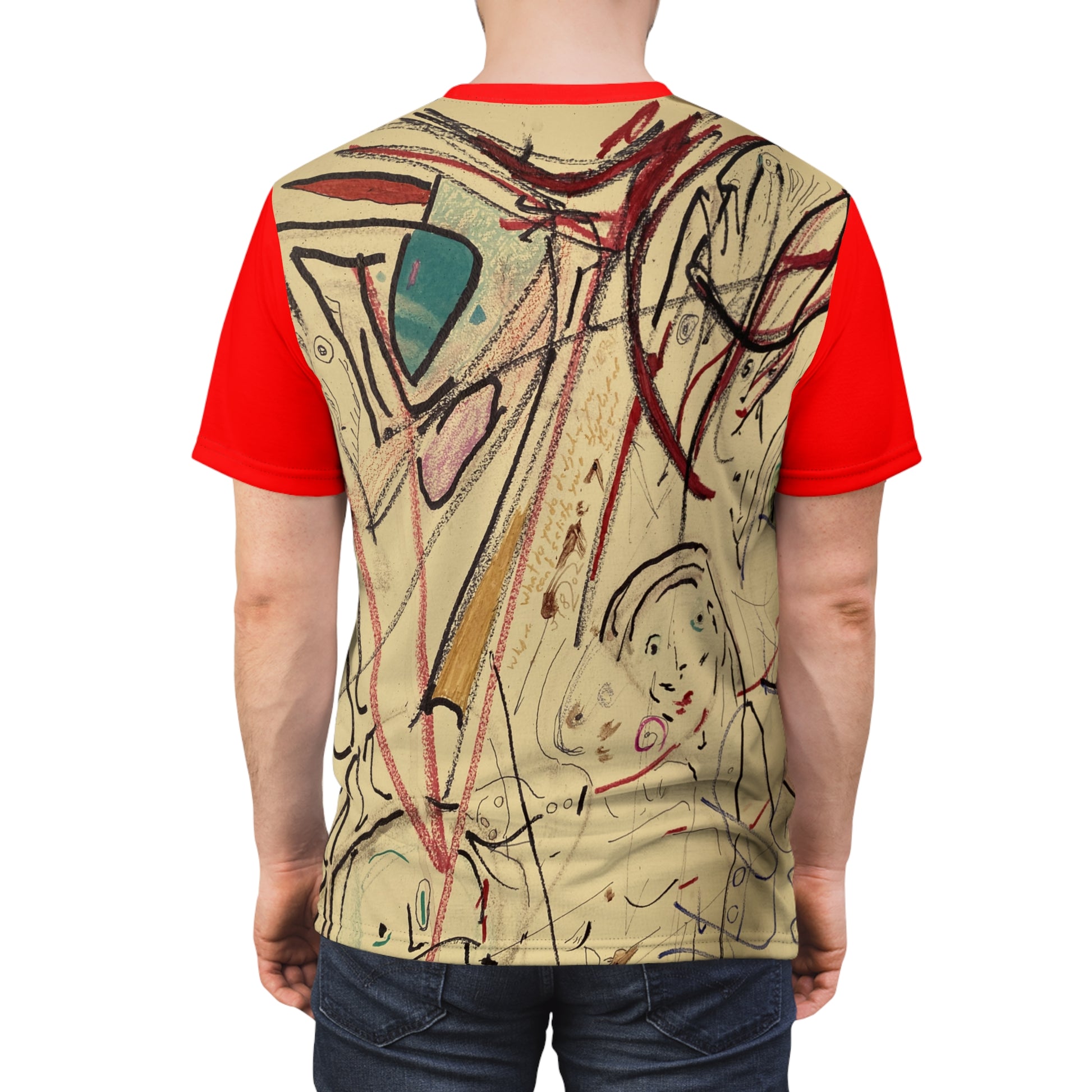 The eighth installment in my Spring 2022 Wall Series of t-shirts. This shirt features a moment at the base of a staircase with whimsical floating abstract forms emerging from curving regulating lines influenced by the movement of a body towards and turning up the staircase -- thinking of Marcel Duchamp's "Nude Descending Staircase".