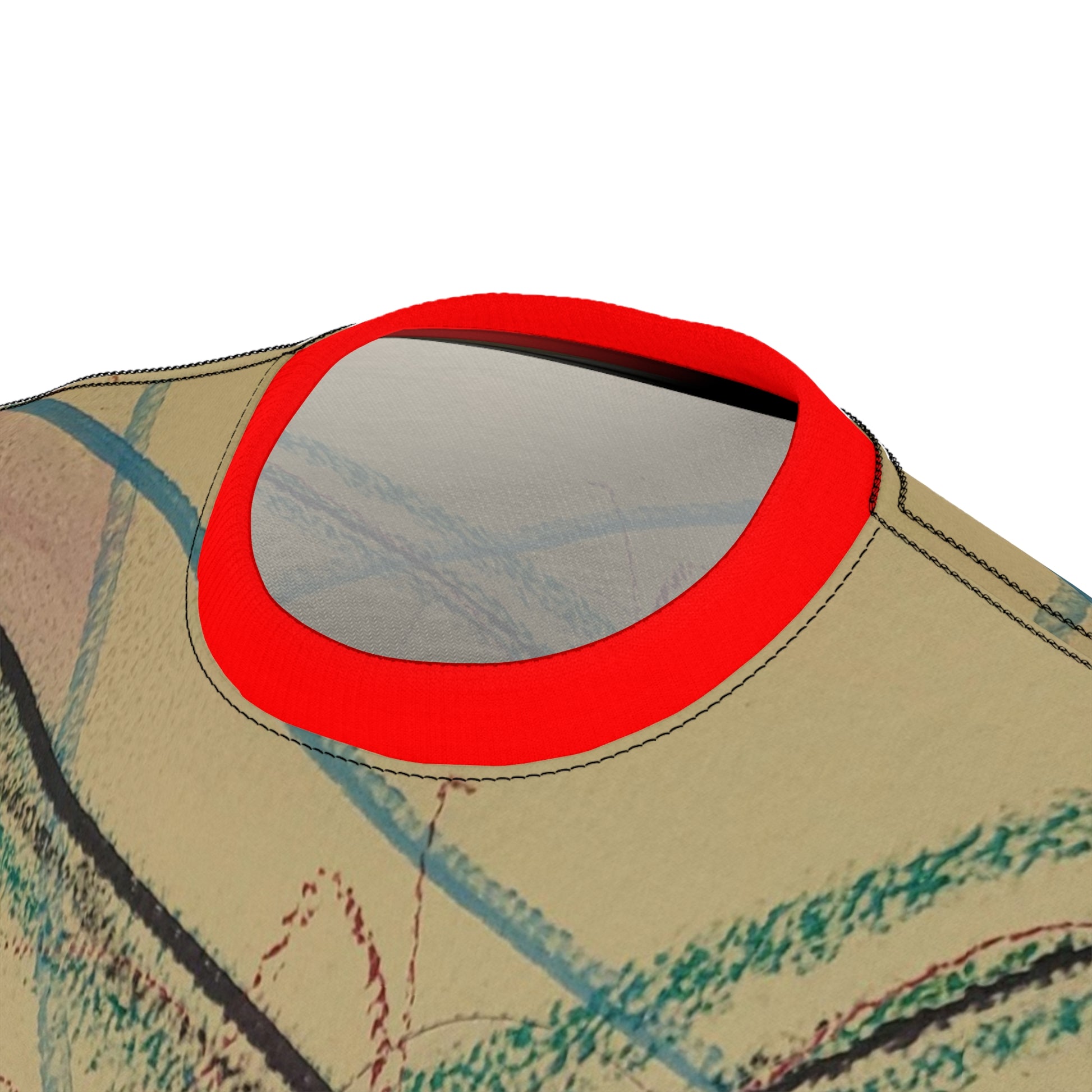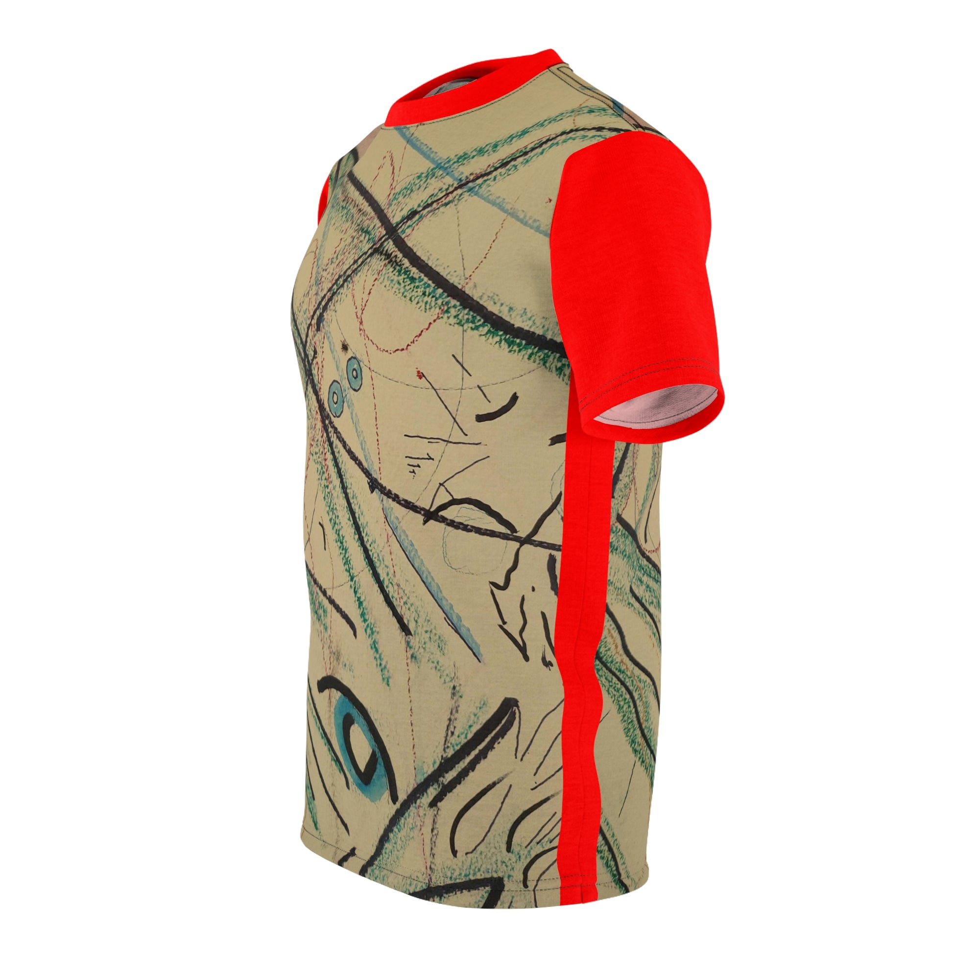 The ninth installment of my Spring 2022 Wall Series. This t-shirt features an actual carnivorous spider -- the sort that do not build webs, but hunt, roaming across a fitting bit of mural in the antechamber the wall.